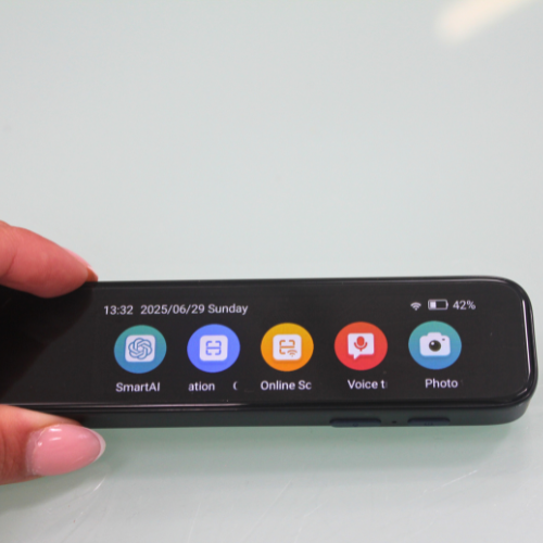 SmartPen understøtter 137 sprog med realtidsoversættelse og AI-assistance. Den har et stort farvedisplay, indbygget højttaler og mikrofon for tydelig kommunikation. Enheden inkluderer dokument-scanner, samtaleoptager og offline-funktion til de mest brugte sprog. Oplades via USB-C og har lang batteritid til hele dagen. Kompakt design, nem at have med overalt.